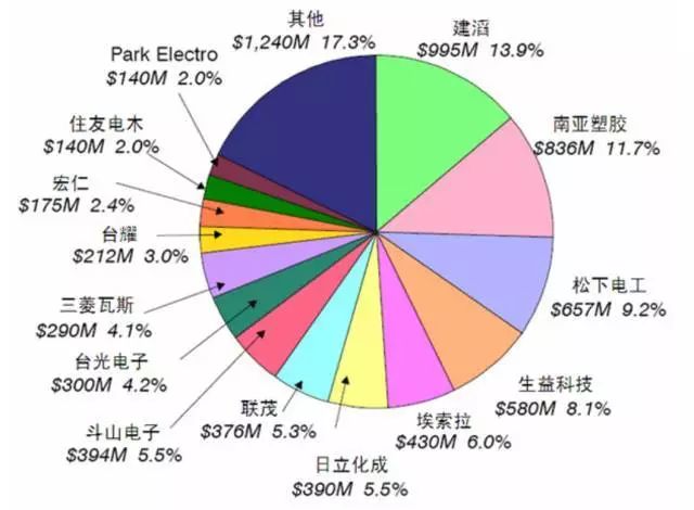 刚性覆铜板产值大致排名: