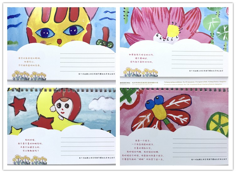 葛校长带来的礼物有着非凡的意义,丝巾和日历上的图案都是由康乃馨“星星的孩子”们亲自创作,孩子们通过画笔与自己的想象力,描绘出他们心中的飞机、小天鹅、太阳、小鸟、猫咪、荷花、月亮、蜻蜓等图案,不失纯真与俏皮,充满童趣。